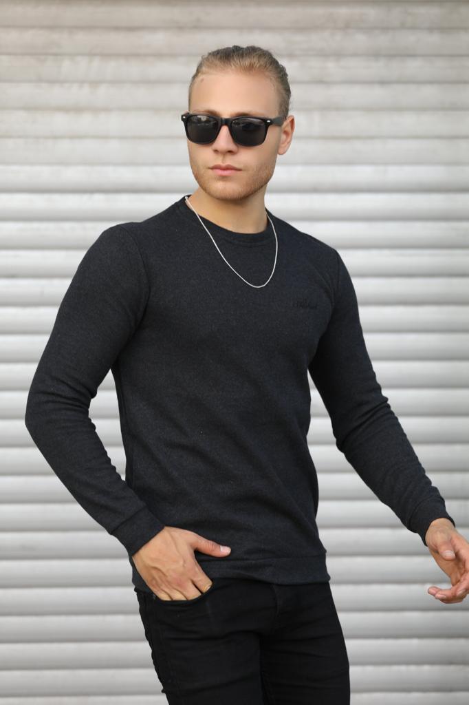 İki İplik 100% Pamuk Sweatshirt Siyah