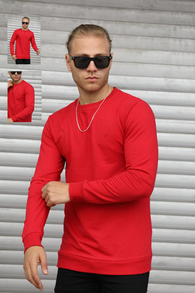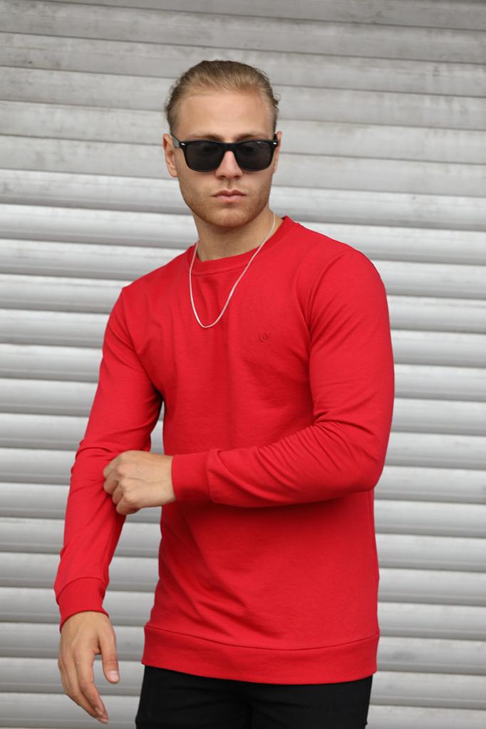 İki İplik 100% Pamuk Sweatshirt Kırmızı