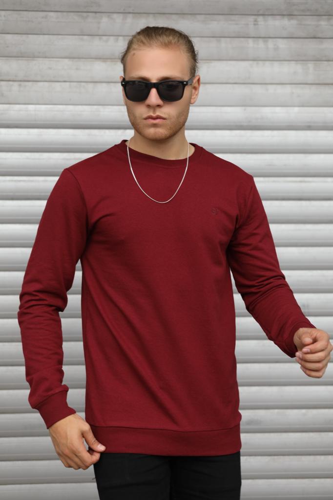 Selanik Kumaş 100% Pamuk Sweatshirt Bordo