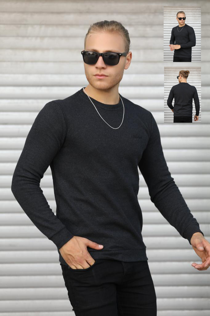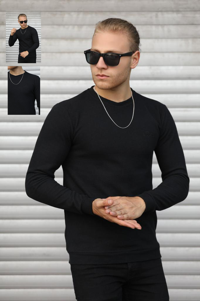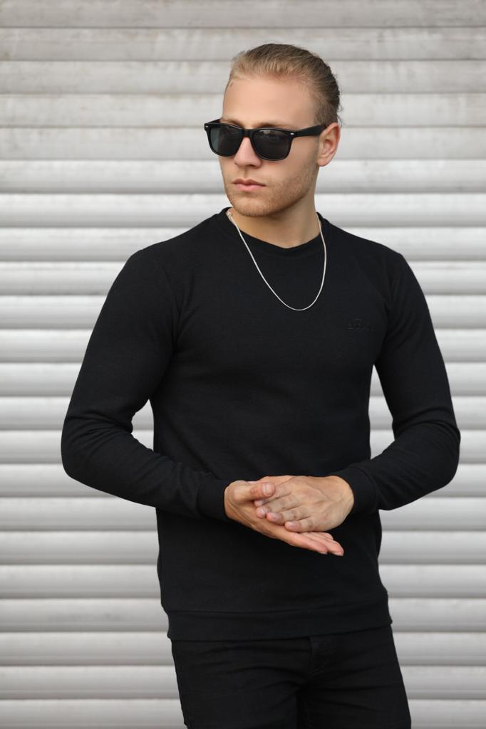 Selanik Kumaş 100% Pamuk Sweatshirt Siyah